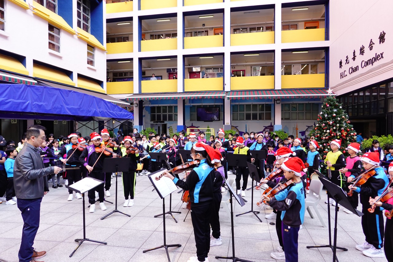 “APSW Orchestra” was established in 2012. The members of the group come from students with good performance skills in various instrumental music teams of our school. Mr. Chow began to serve as the conductor of the school orchestra in 2013. Our orchestra won the Silver Medal in the Joint School Music Competition, and achieved DISTINCTION (Excellent) in the E-CONTEST Competition. The orchestra is now actively participating in performances inside and outside the school to enrich its performance experience. On Christmas Eve this year, the orchestra performed Christmas performances at the school playground and Ocean Park.