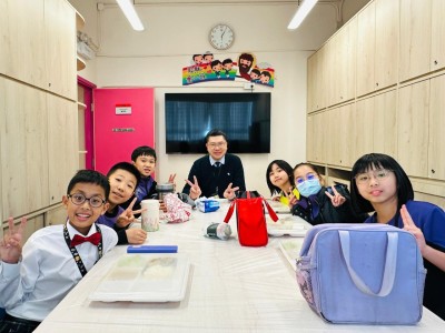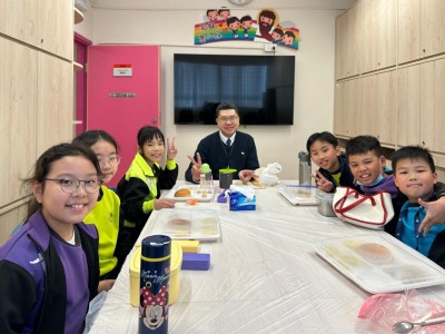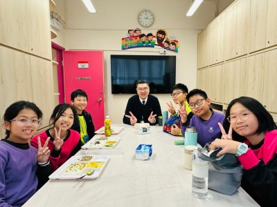 每年學校都有一個特別機會讓李校長與同學一同午膳,聽聽同學們分享校園點滴,李校長亦會解答同學們的問題,今年「與校長午餐共享時光」活動從5-6年級開始。這不僅是與校長一起享用午飯,更是我們彼此心靈交流的機會,