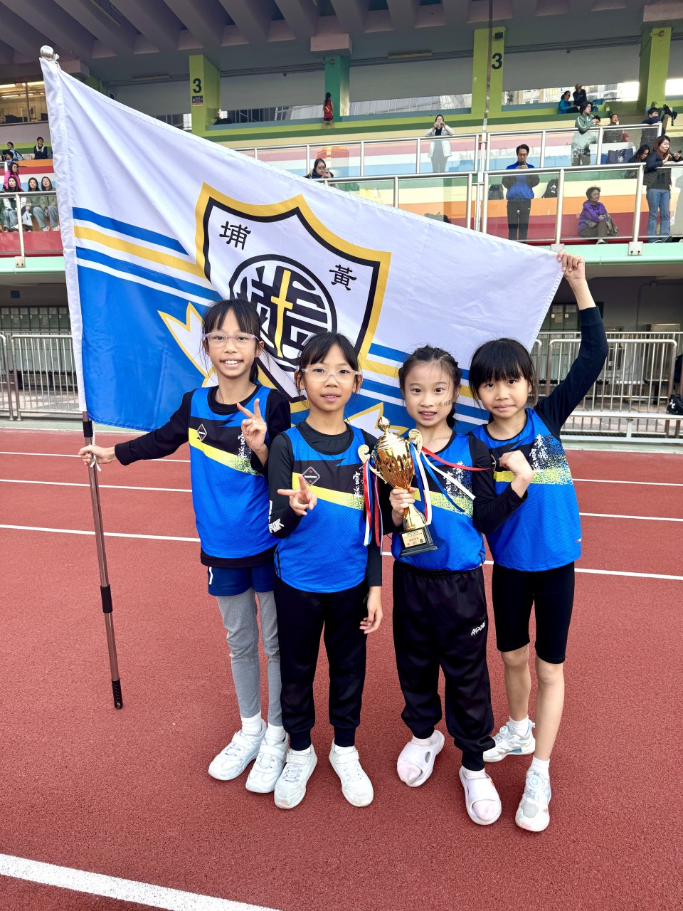 黃宣田徑隊早前參加中國香港學界體育聯會主辦的九龍南區小學校際田徑比賽,獲得優秀的成績。經過一整年的努力訓練,同學們在比賽中發揮出超水準的表現,於 43 間參賽學校,超過 1400名參賽運動員中,獲得以下成績: