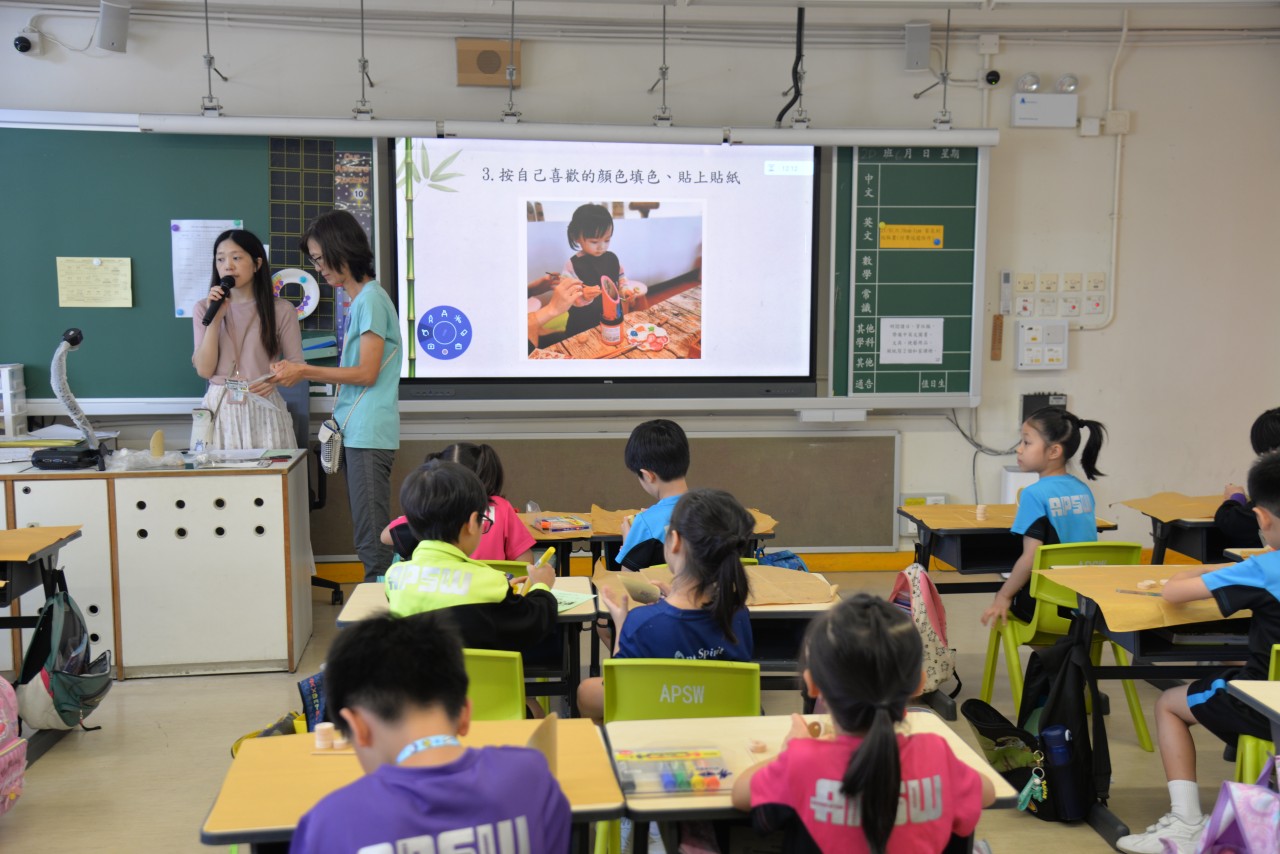「故事爸媽」家長義工協助學校推動閱讀活動,展現「家校合作」的精神,共同營造良好的校園閱讀氛圍,令初小學生從小愛上閱讀。