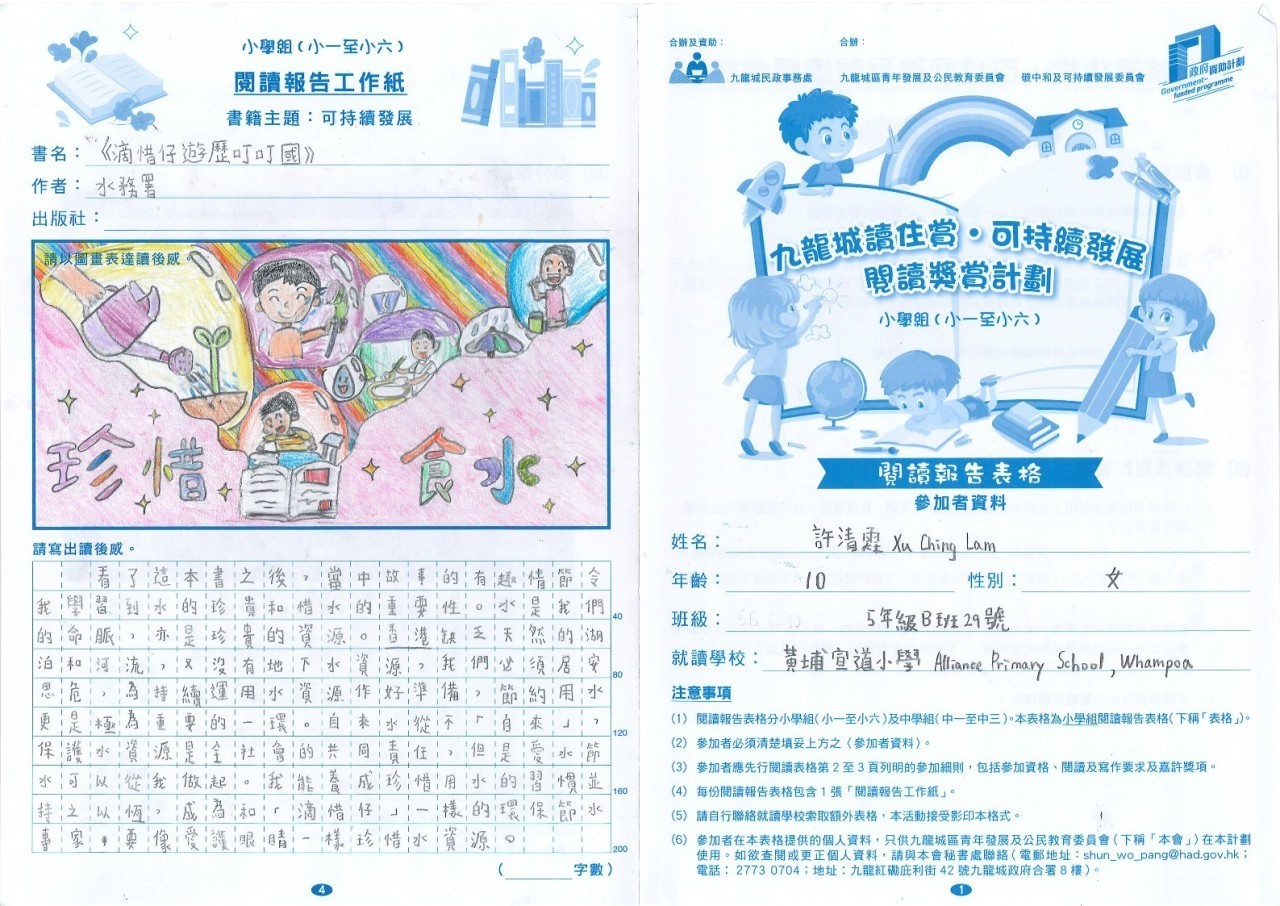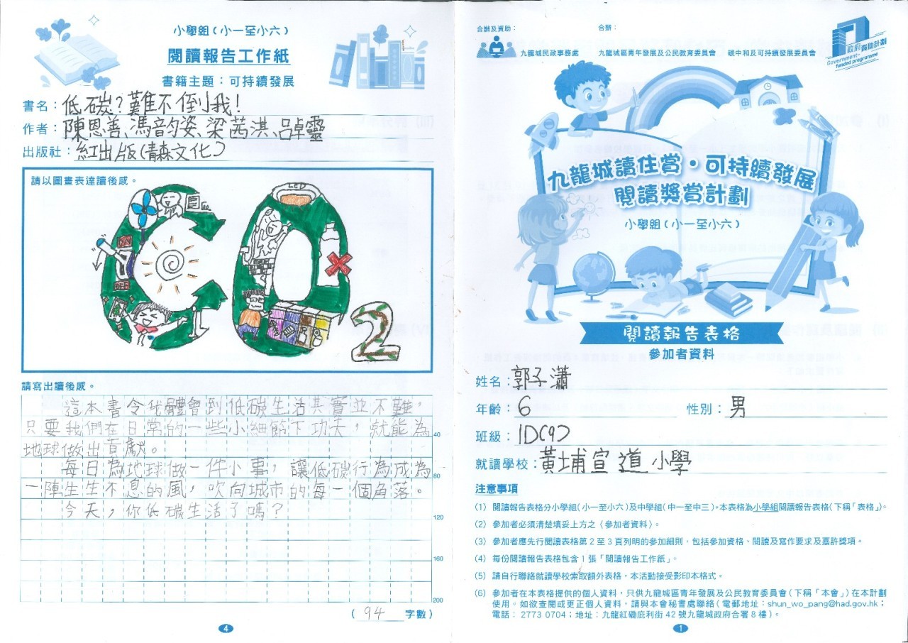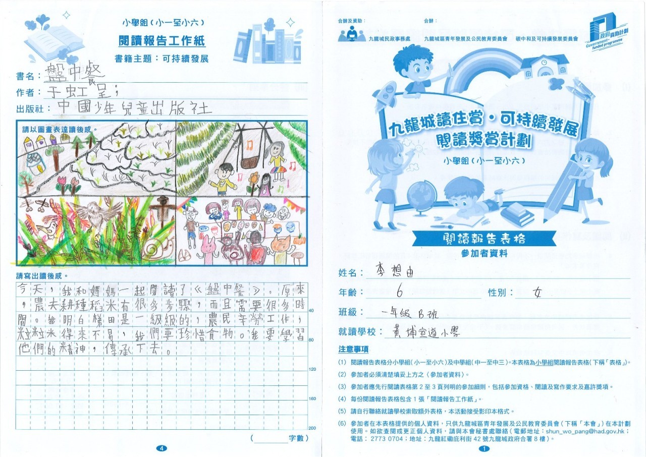 恭喜本校6位同學榮獲【九龍城讀住賞•可持續發展閱讀獎賞計劃】優秀表現獎!