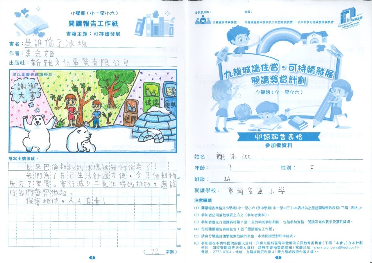 非常欣賞同學們用心閲讀有關可持續發展的圖書,