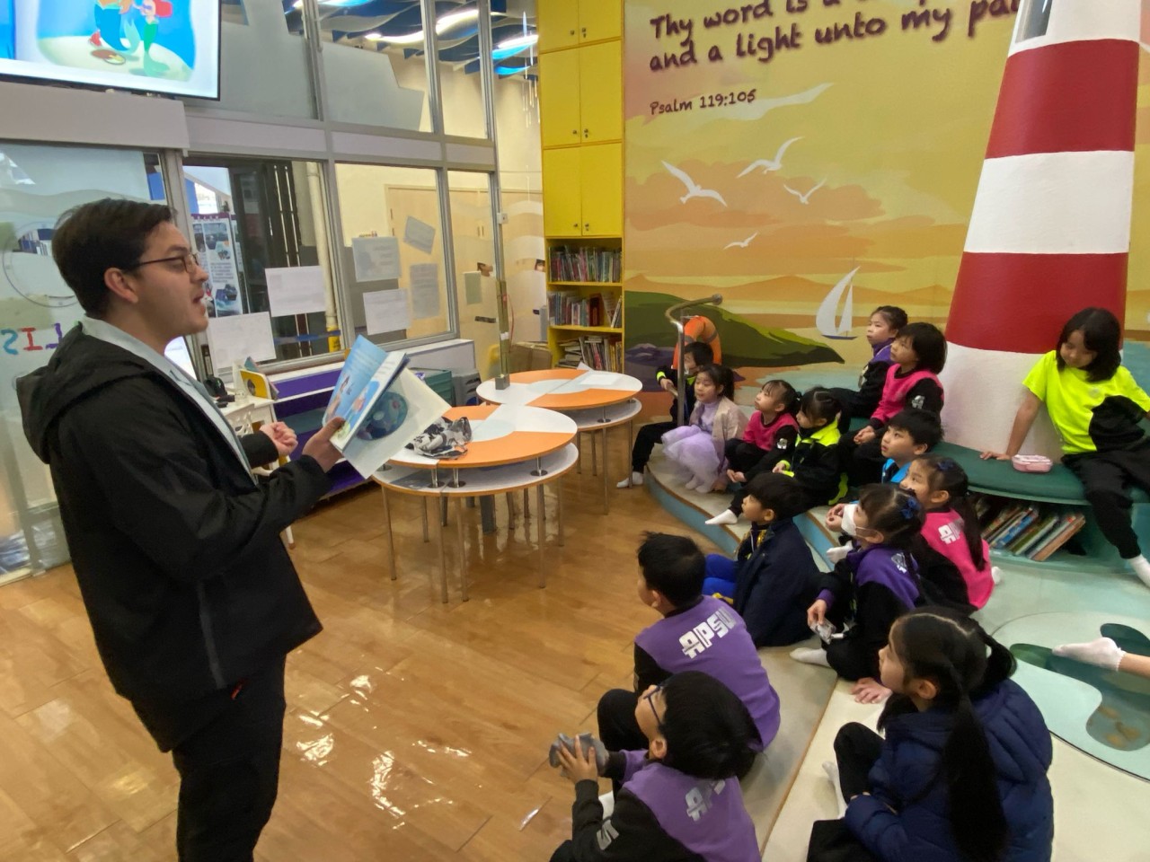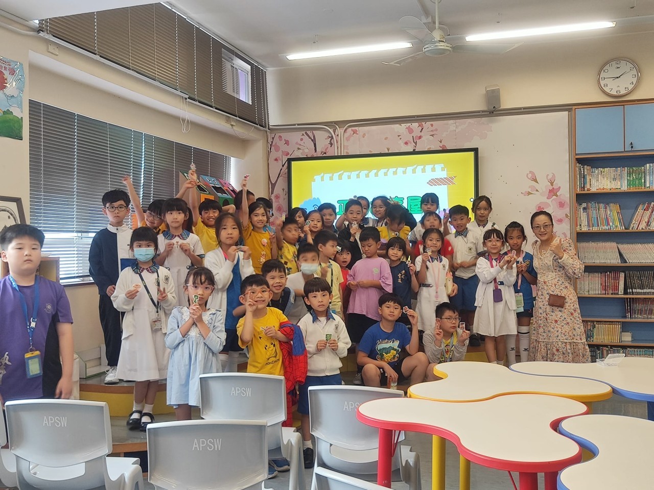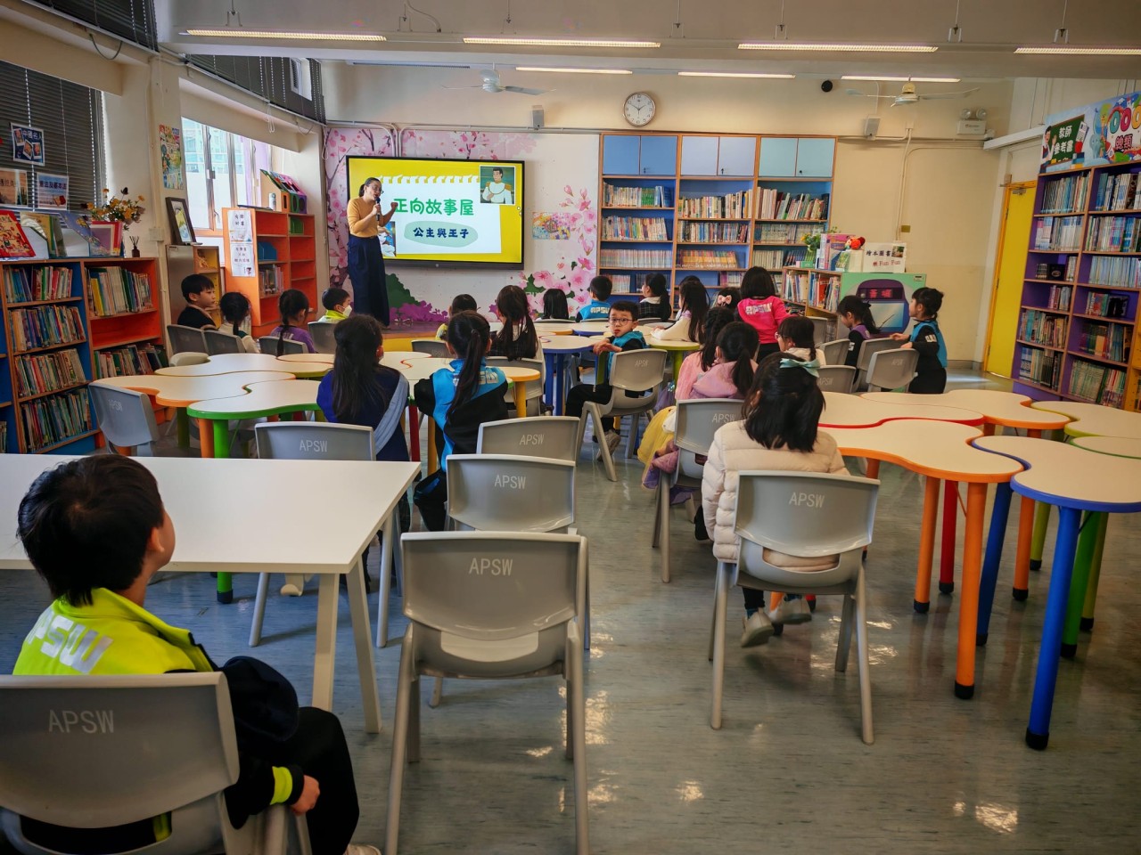 「故事爸媽」家長義工協助學校推動閱讀活動,展現「家校合作」的精神,共同營造良好的校園閱讀氛圍,令初小學生從小愛上閱讀。