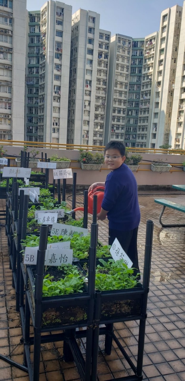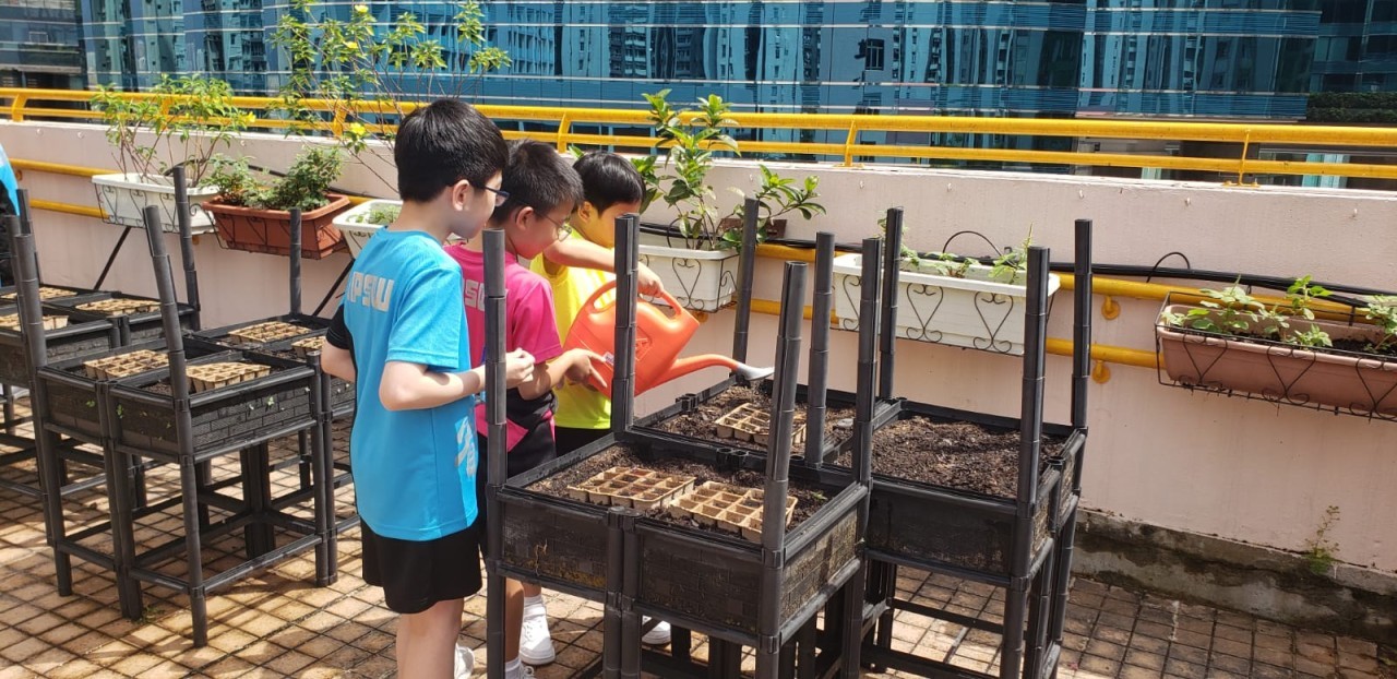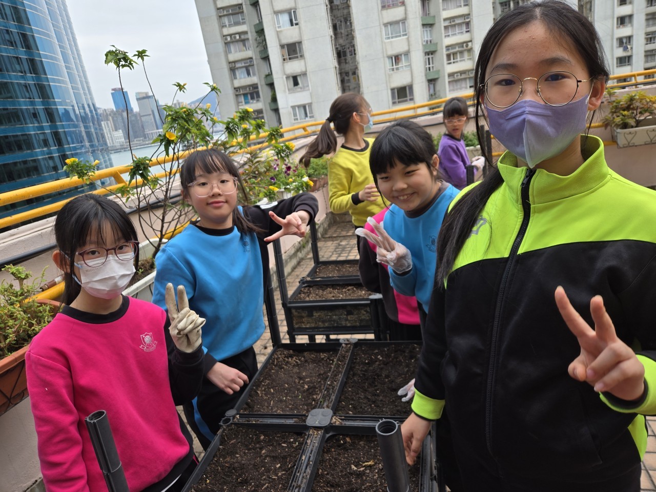 為了讓學生體會種植的樂趣及與家人朋友分享種植的成果。本校參加了網上電價計劃,在校內三樓空中花園進行有機種植活動,讓學生在種植的過程中,培養耐性及對環境的關愛,並對食物的尊重及珍惜。今年20位四至六年級的同學在下學期透過6次學習課及三個月的種植體驗學習有機種植。學生的學習共分兩個階段,第一個階段配合4次的種植課,學習下種、澆水、施肥、除草除蟲及收割等種植技巧,老師會從旁指導。第二個階段,加入兩個的種植課,並一個月自行種植期,學生利用三個小息自行照顧農作物。從學生所分享的心得及感受可知,學生與種植作物產生更大的連繫感和責任感,學生也邀請同班同學參觀自己的種植箱,分享種植的樂趣。