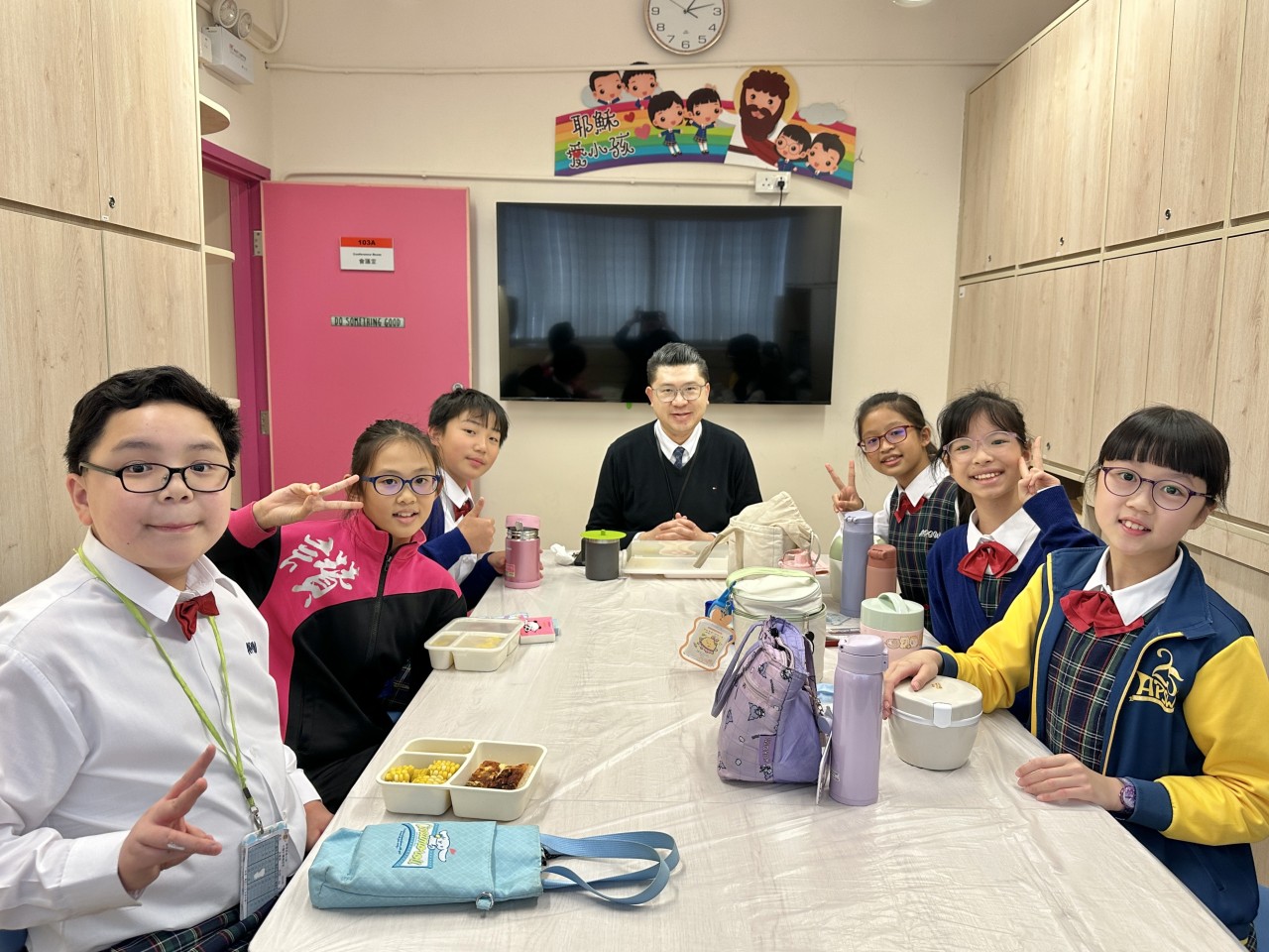 每年學校都有一個特別機會讓李校長與同學一同午膳,聽聽同學們分享校園點滴,李校長亦會解答同學們的問題,今年「與校長午餐共享時光」活動從5-6年級開始。這不僅是與校長一起享用午飯,更是我們彼此心靈交流的機會,