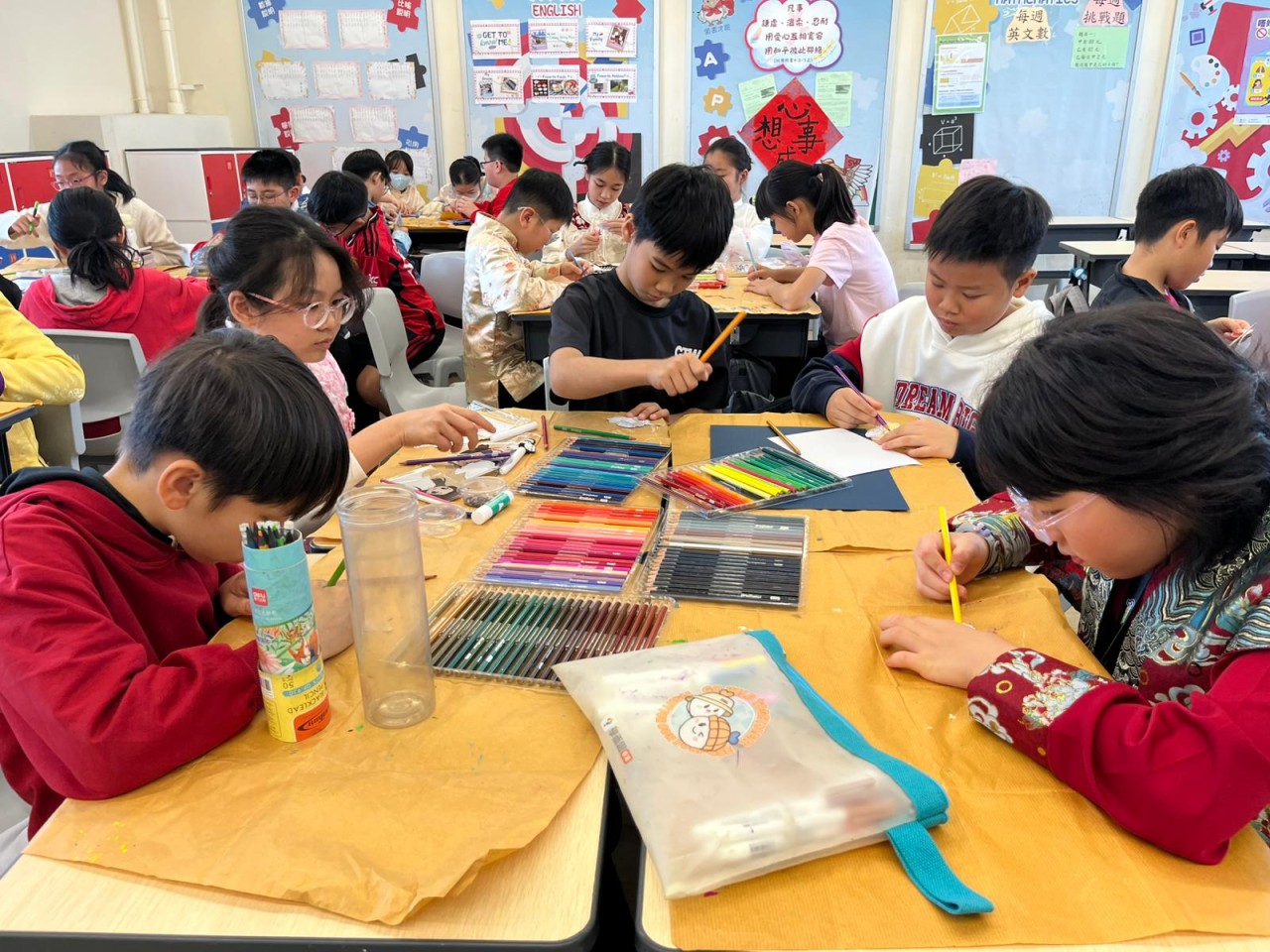 同學們亦化身小匠人,小心翼翼地鑲嵌「螺鈿」工藝品、專心致志地剪窗花,並執起毛筆揮毫寫揮春。大家紛紛展示成品,各級展現的技藝都令人讚嘆不已!