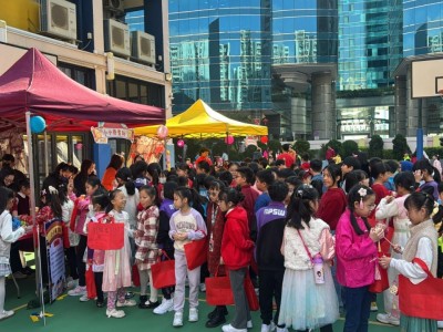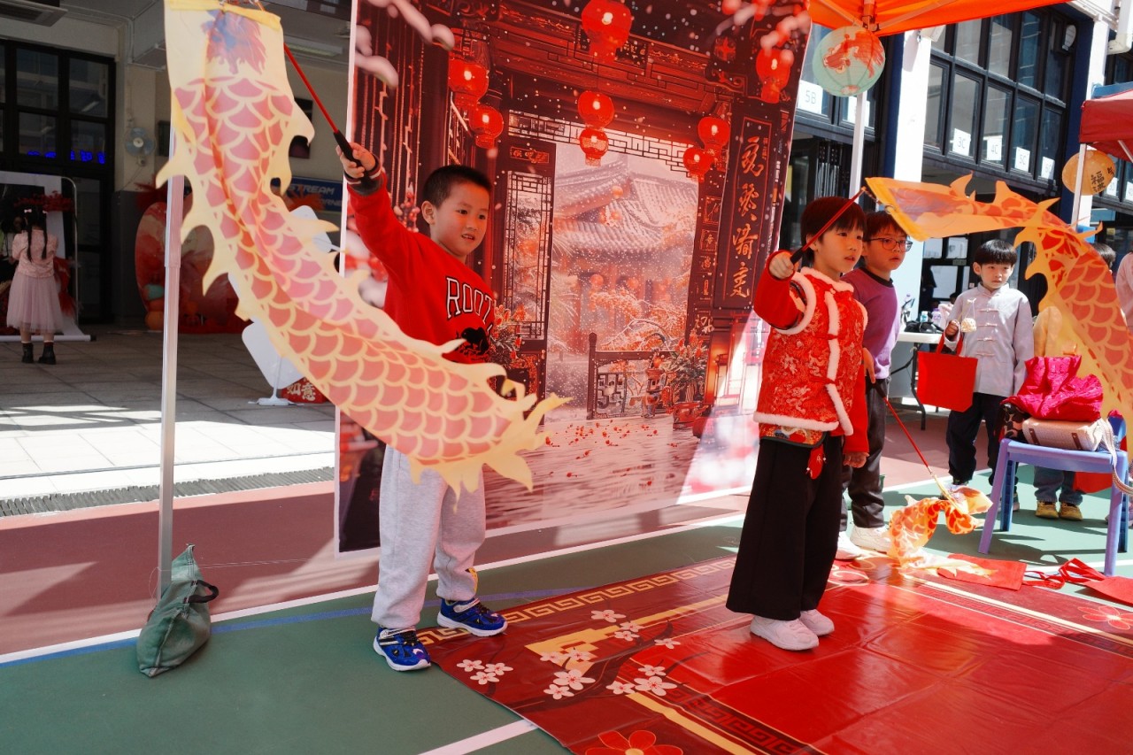 當天,操場化身熱鬧的「古代市集」。同學們參與各式攤位,親手製作竹編燈籠、舞動小龍、挑戰投壺,體會古代民間遊戲的趣味。最受歡迎的莫過於化身糖畫師,自製糖畫,拍照留念後一嚐傳統甜味,甜在心頭!