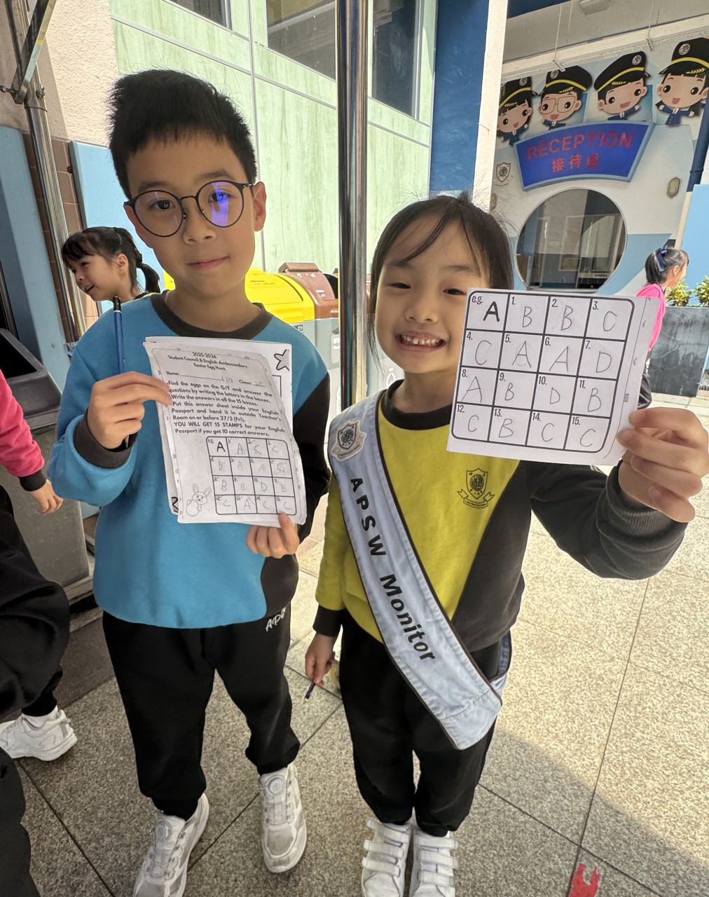 Students are hopping around to find the answers, fill out their sheets, and earn those 15 stamps for their English Passports. It’s a 'cracking' good time for everyone involved!